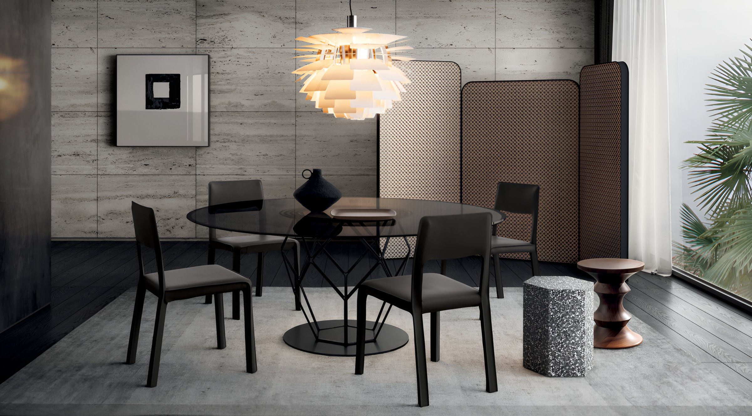 Шестиугольные и пятиугольные геометрические фигуры, соединенные между собой, оживляют стальную основу, отделанную в мельчайших деталях. Новые текстурированные металлические лаки делают отделку более изысканной. Крышка, доступная в двух размерах, выполнена из дымчатого стекла с пескоструйным рисунком или из шпона макассарского черного дерева с оригинальной вставкой из кленового дерева.