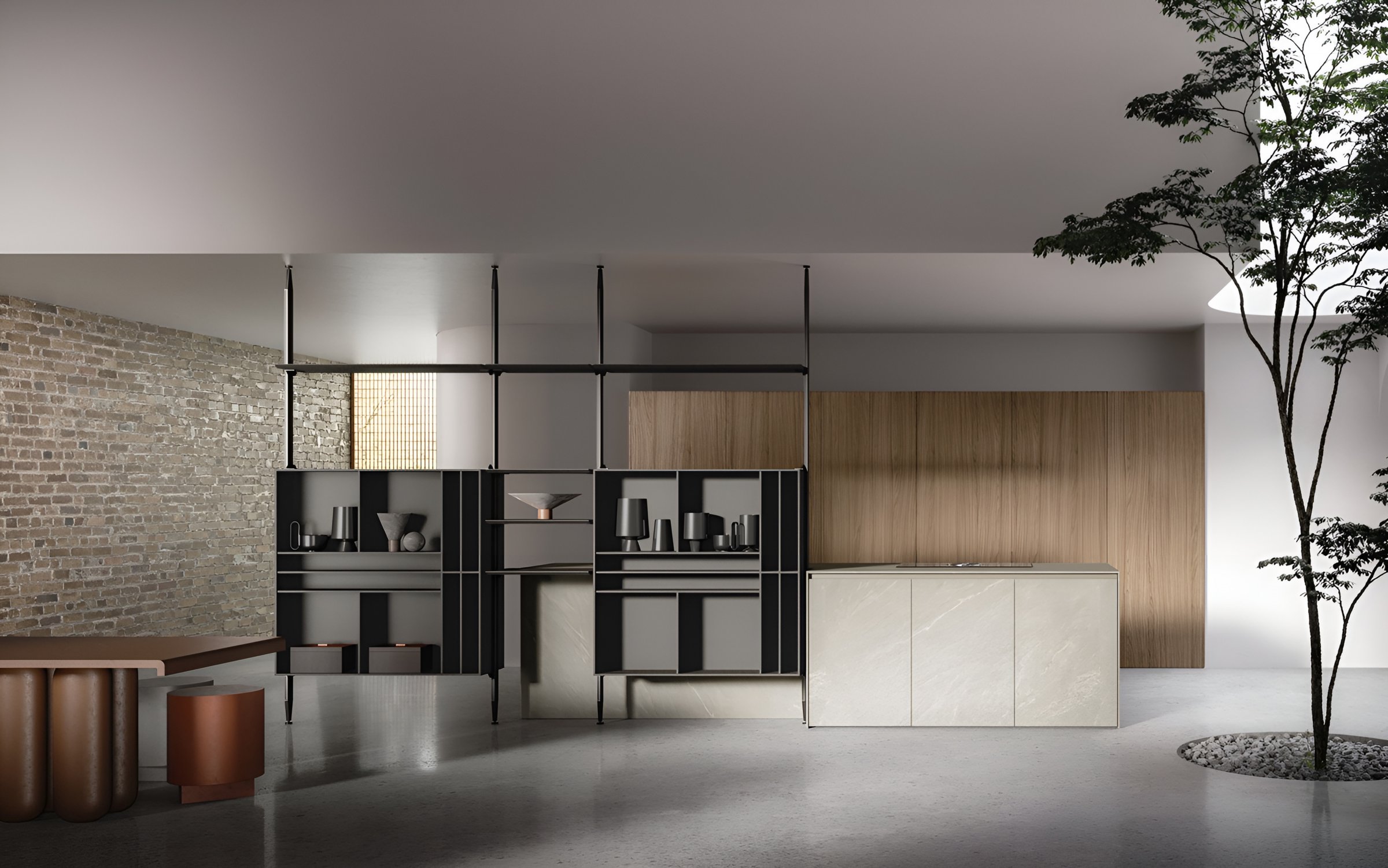 Кухня, которая становится единым целым с архитектурой пространства, широкомасштабный проект в соответствии с новыми сценариями жизни, где продукт и среда становятся одним целым, дополняя друг друга в умелом балансе.