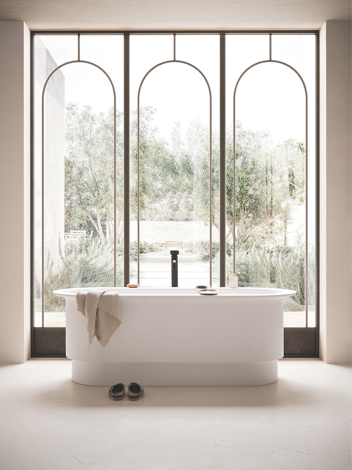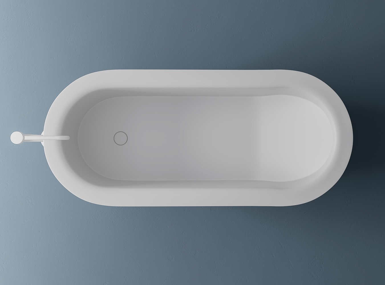 Она отличается высокой эстетической ценностью, мягким на ощупь покрытием и приятной тактильной поверхностью, которая обеспечивается за счет использования материала Matt Tekno Deimos. Благодаря эксклюзивному дизайну, разработанному Гарсией Кумини, римская ванна находит свое максимальное выражение, когда стоит в центре комнаты, благодаря своим эксклюзивным линиям, которые придают престиж обстановке ванной комнаты. Для большей практичности и функциональности отдельно стоящая ванна может быть оснащена элегантной полкой из орехового дерева Каналетто для хранения мыла и парфюмерии, а также рядом аксессуаров, всегда подписанных Гарсией Кумини.