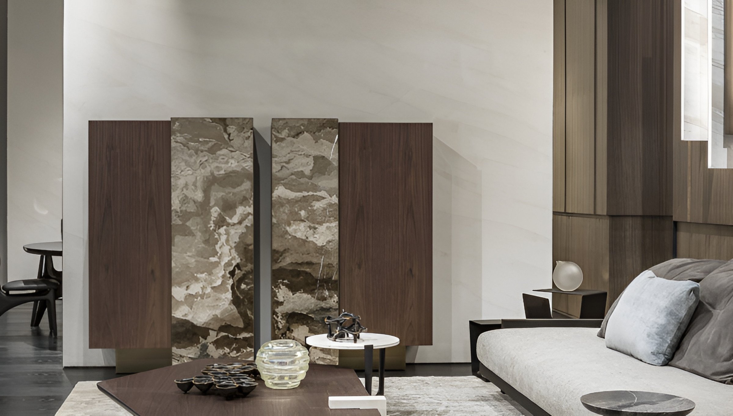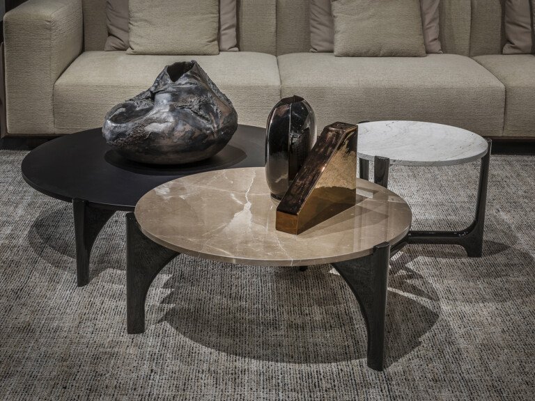 Семейство, характеризующееся элегантной основой, интерпретируемой двумя разными способами. Созданное знаком, который, будучи почти перевёрнутым, позволяет иметь два типа конструкций, на которые устанавливаются столешницы из разных материалов. Единый язык для универсального и изысканного сочетания элементов .