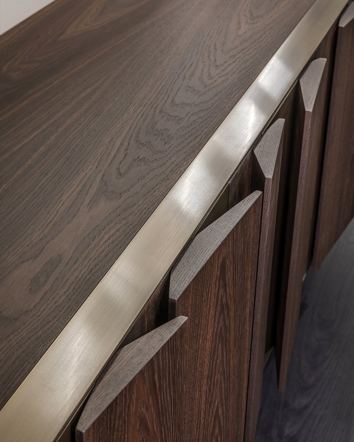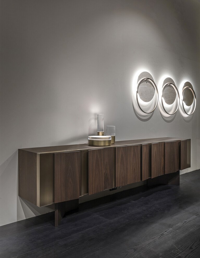 Чтобы дополнить коллекцию мебели Fractal, был создан сервант Fractal, дизайн которого основан на сочетании объёмных элементов с треугольным или трапециевидным сечением и плоских деталей, которые чередуются, создавая движение, стремящееся к бесконечности.