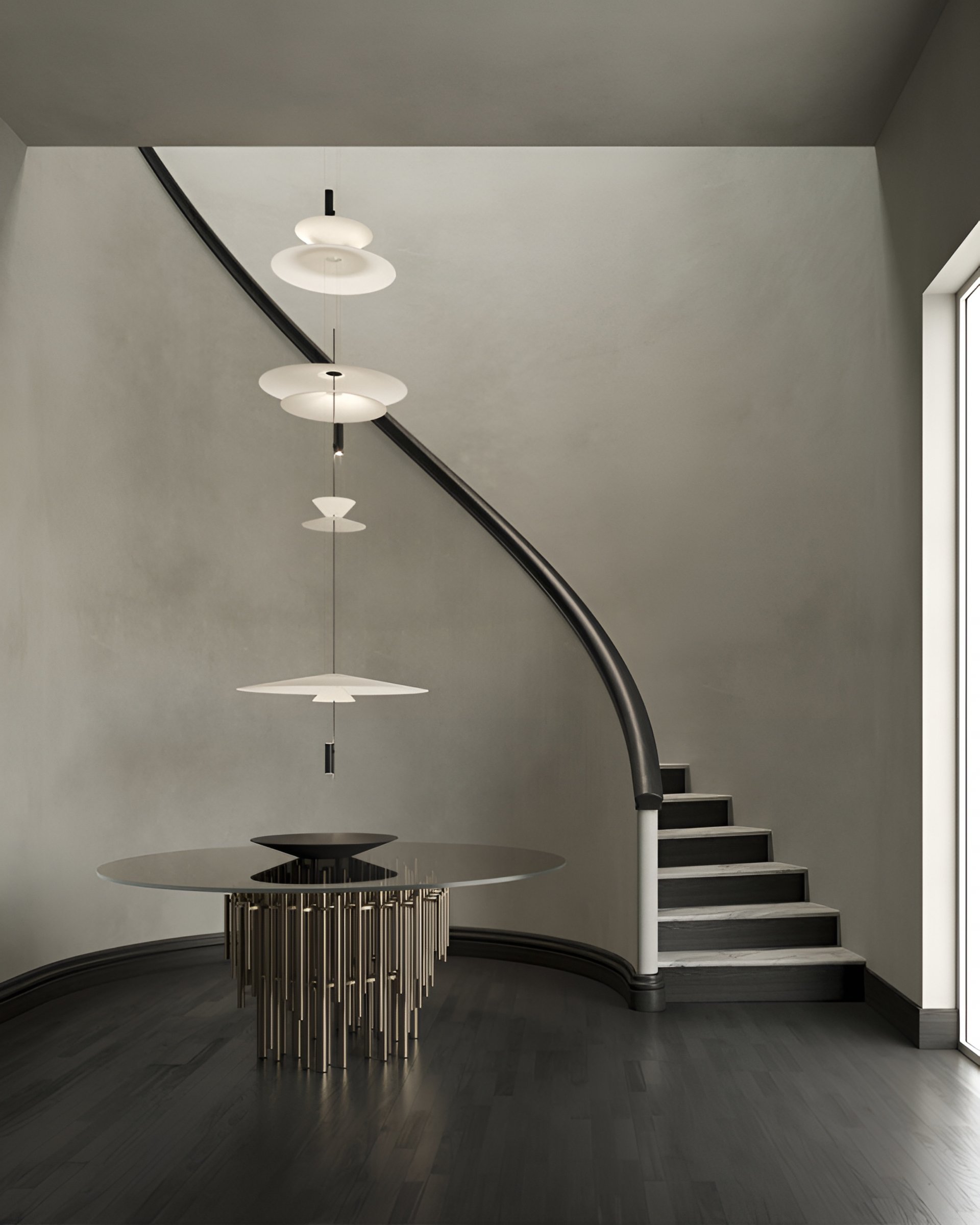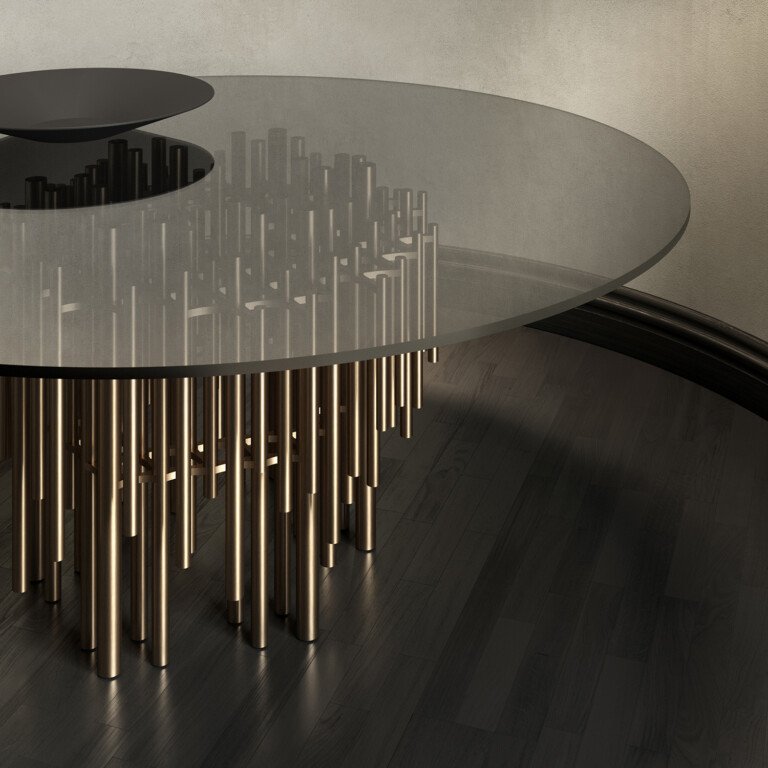 Конструктивные элементы, образующие основу, формируются парой формованных пластин, к которым крепятся вертикальные элементы различных размеров. Пластины изготавливаются из одного круглого элемента, формованного с использованием технологии ЧПУ, а затем обрабатываются вручную.