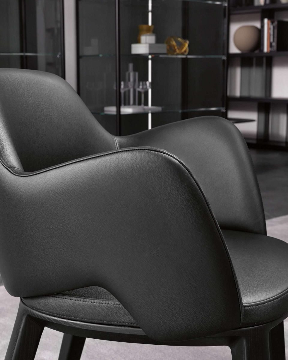 Изящный,современный. Черная деревянная конструкция с открытыми порами, кожаное сиденье и спинка Black One.