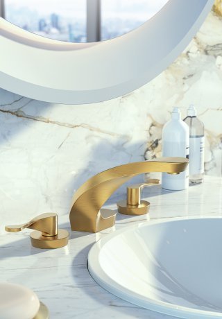 Эта футуристическая коллекция, разработанная Давиде Оппицци, вдохновлена насыщенной цветовой гаммой воды, движением волн и утонченными японскими иероглифами, написанными одним росчерком кисти. Смесители могут оснащаться светодиодной подсветкой, которая меняет цвет в зависимости от температуры воды