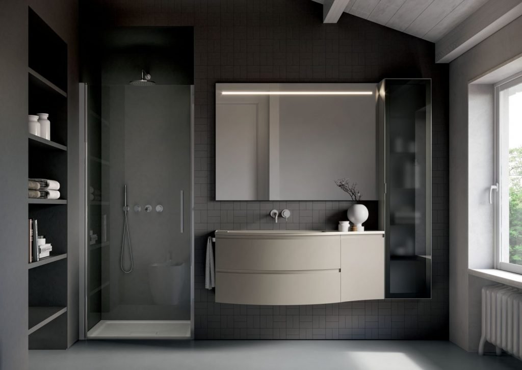 Form-это настраиваемая коллекция современных ванных комнат, в которой мебель для ванных комнат может быть наземной или подвесной, линейной или изогнутой, с дверцами в виде горловины.