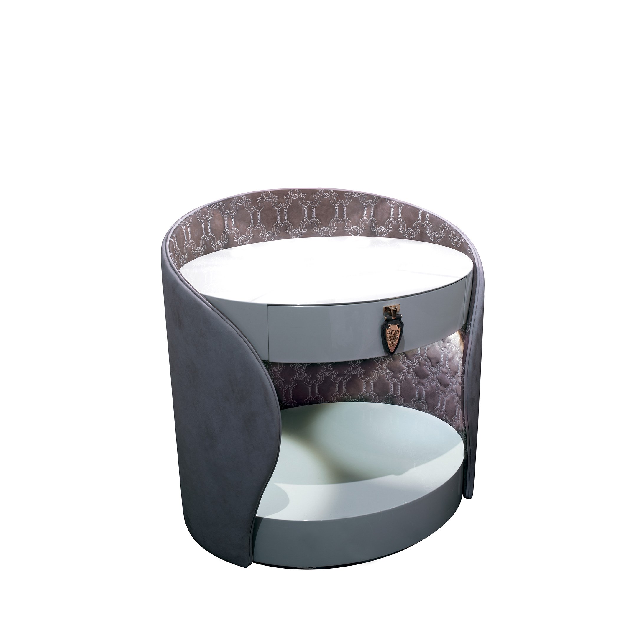 Опорная рама из массива бука и фанеры. Сиденье с эластичными ремнями на буковой раме. Обивка спинки и подлокотников из пенополиуретана. Подушки сидений из пенополиуретана различной плотности, полужесткие внизу и мягкие вверху. Задняя часть спинки и боковины с наполнением из акрилового волокна с подложкой из акрилового вельвета. Обивка внешних сторон подлокотников и верхнего края спинки в технике капитоне с пуговицами. Передние и задние ножки обиты кожей или тканью. Передние ножки украшены поворотными латунными кольцами с выгравированным овальным мотивом и овальным латунным медальоном с геральдической символикой Visionnaire. Опция: вышивка геральдической символики Visionnaire на спинке.