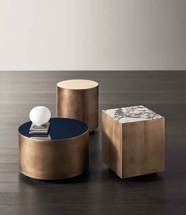 Боковые панели по периметру доступны в металлической отделке ручной работы, а столешницы — в различных вариантах отделки, от стекла до зеркал, лака и мрамора. Очень эффектны зеркальные и металлические версии, полностью покрытые отражающими поверхностями или металлом.