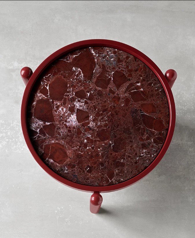 Каркас из массива дерева выполнен таким образом, чтобы создавать визуальную гармонию; он предлагается в различных цветовых решениях — табачном, черном, белом или светлом — или с глянцевым или матовым лаковым покрытием. Аккуратные, простые формы подчёркиваются столешницей — круглым подносом, на котором лежит столешница из окрашенного стекла, мрамора или дуба. Различные материалы и дополнительная нижняя столешница делают это изделие чрезвычайно универсальным, а также позволяют сочетать цветовые решения тон в тон или с контрастными комбинациями, чтобы придать ему более классический или декоративный вид.