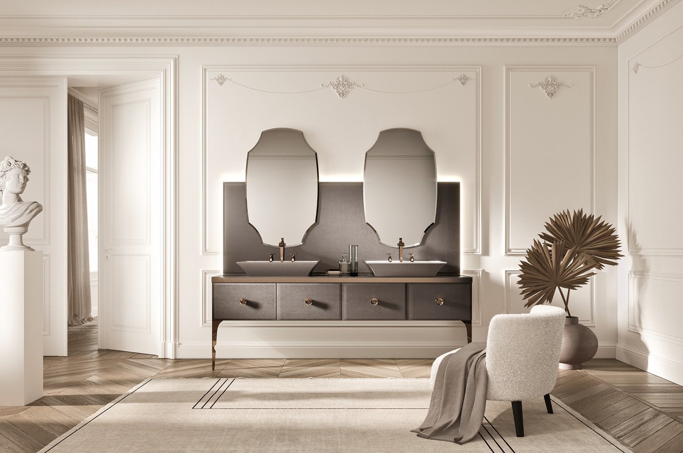 Линия характеризуется эстетикой стекла, ценными деталями и мягкими и обволакивающими формами. Конкретная ванная комната, богатая внушением, вдохновленная современным видением, но тесно связанная с традициями, в которой изысканные детали и нежные ноты деко рассказывают элегантную и вневременную атмосферу. Знаковый элемент коллекции Majestic, металлическая ножка, перепрофилируется в более пышную форму, en paires с ручкой, с легким и нежным дизайном. Также новинкой коллекции являются драгоценные бархатные покрытия в сочетании со стеклом: эксклюзивное решение, которое дополняет обширную выборку доступных отделок.