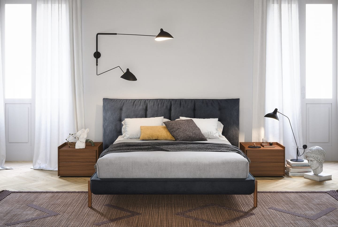 На кровати Tufté, спроектированной Сильвией Преведелло, мягкое изголовье с горизонтальной прострочкой становится ещё мягче, создавая характерный вид «пушистости». Минималистичная, функциональная кровать стоит на деревянных ножках, создавая впечатление, что она парит в комнате.
