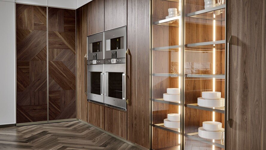 Кухня с вневременной красотой и изысканностью благодаря эффекту Canneté, способному придать дверце трехмерность и уникальное тактильное ощущение.