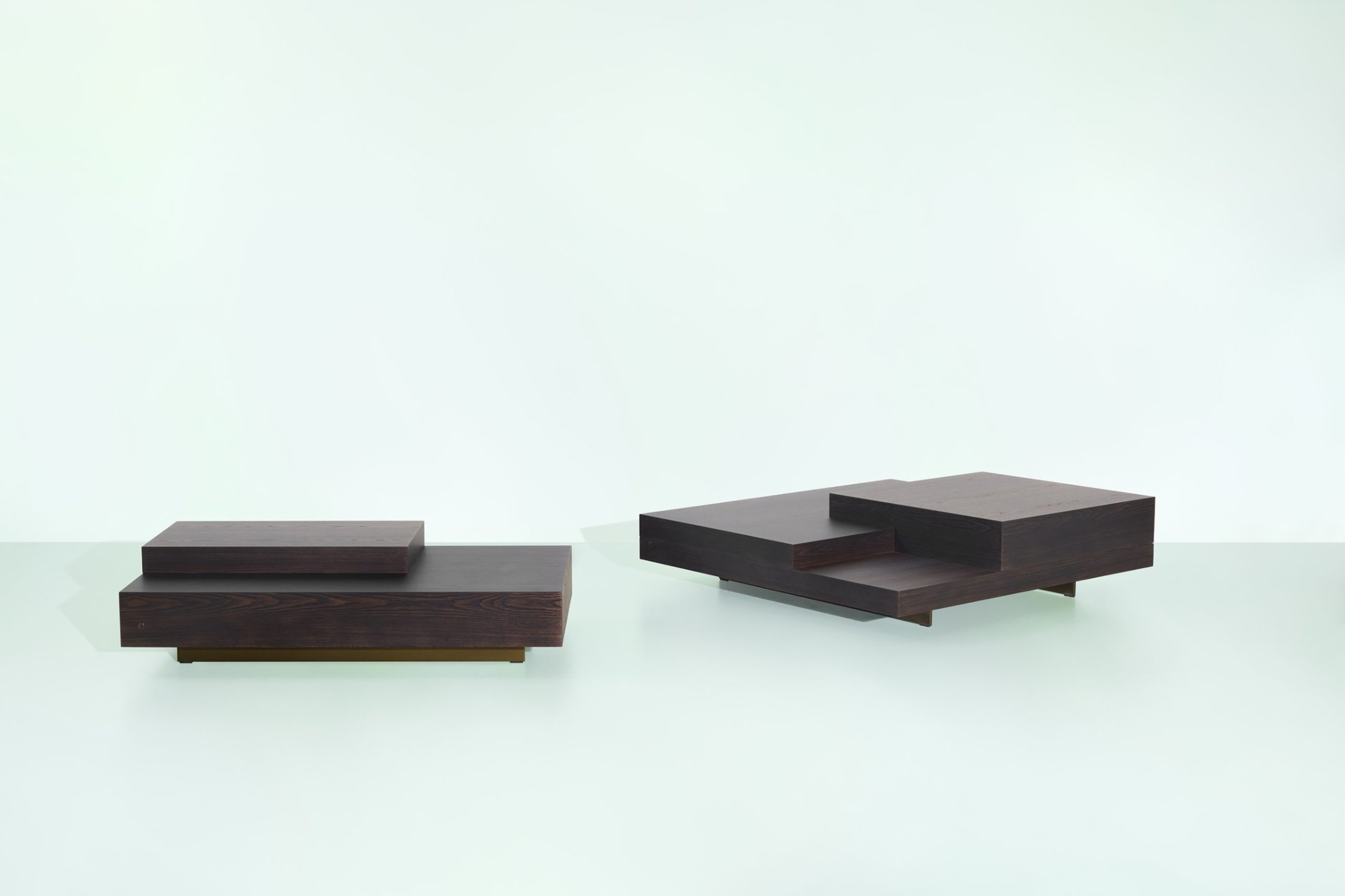 Полные и пустые объёмы, опирающиеся на то же металлическое основание, что и диван, с матовой отделкой Bronze Shadow. Изготовленные из тёмно-оливковой или светло-оливковой фанеры из ясеня, обработанной вручную, эти столики подчёркивают геометрическую гармонию идеально сбалансированных контрастов. Предлагаемые в двух размерах, они представляют собой универсальную и функциональную мебель, созданную в соответствии с философией жизни, которая в полной мере учитывает сложность повседневных взаимодействий.