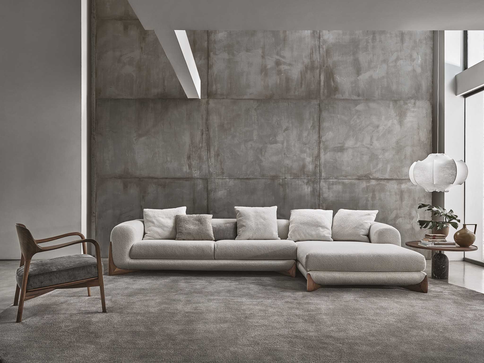 Расположенные близко к четырем углам, ножки из орехового массива Canaletta навязывают себя, определяя концы этих элементов мебели и напоминая форму скрепки. Они классифицируются как отличительные, несущие и удерживающие элементы мягкой формы, которая без них имела бы тенденцию к расширению наружу.