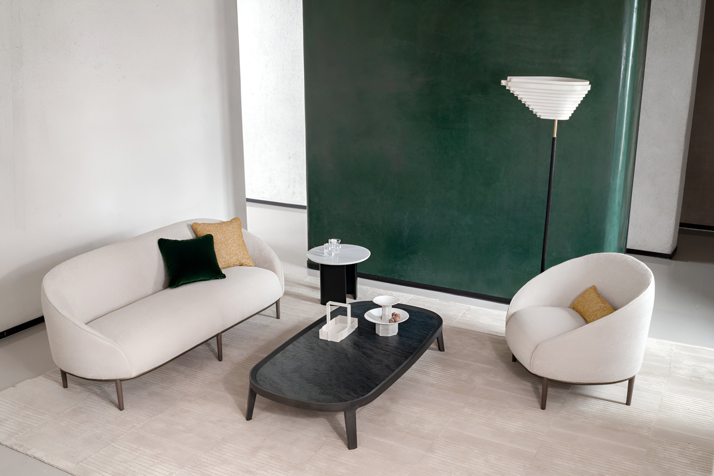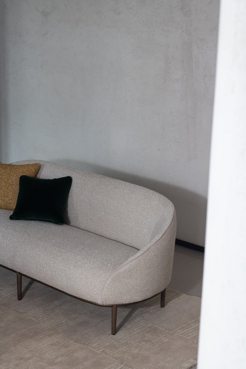 Yoisho создает уютное гнездышко для современного отдыха благодаря обивке и очень высоким подушкам для сидения.