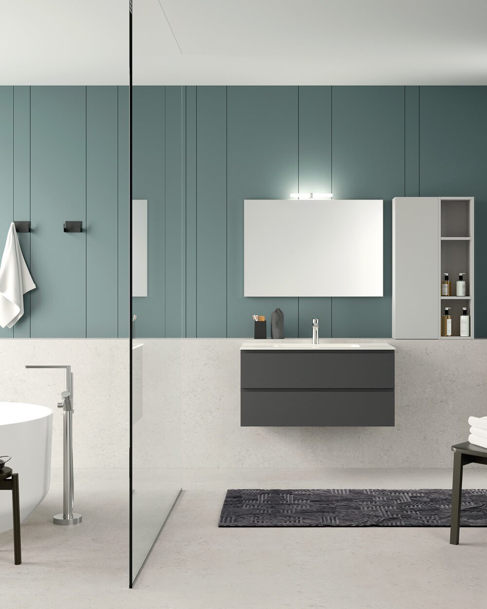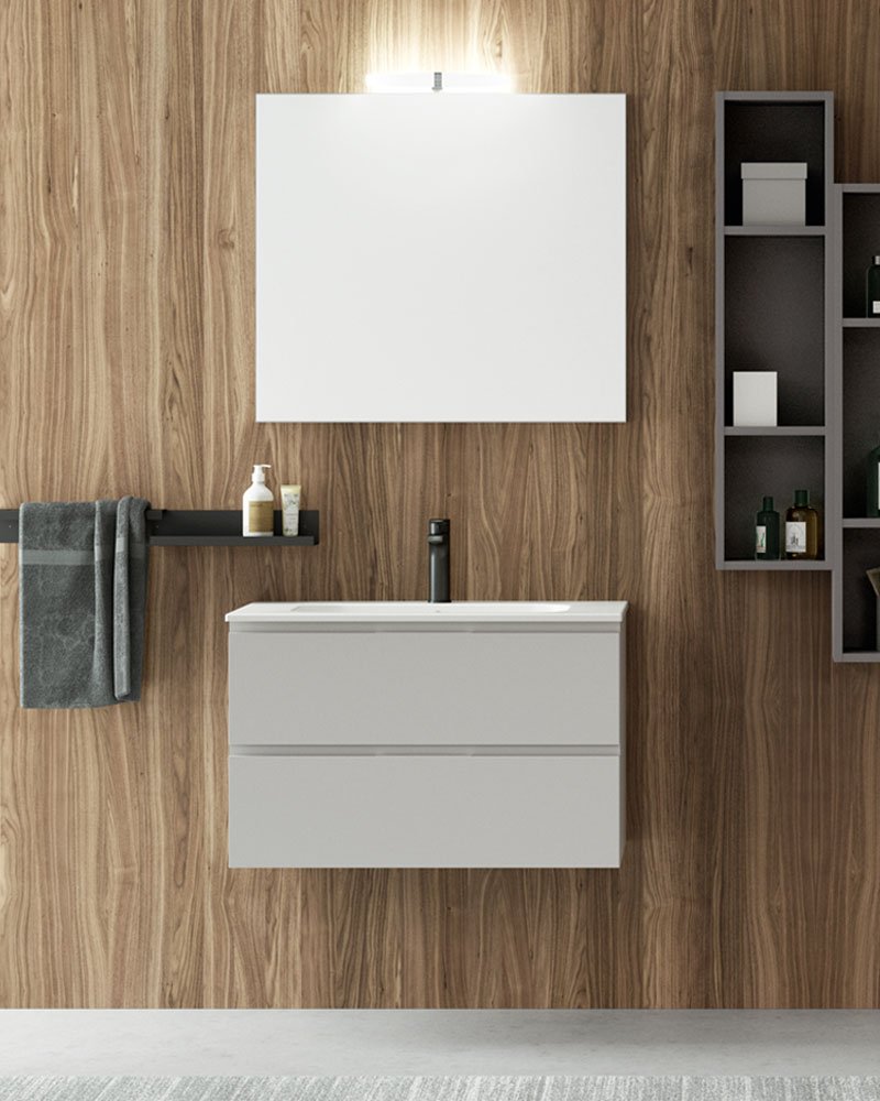Функциональная геометрия подходит для малых и больших сред. Каждый элемент и деталь коллекции мебели для ванной комнаты Qubo 2 предназначен для отделки и завершения обстановки с основным стилем и максимальной практичностью.