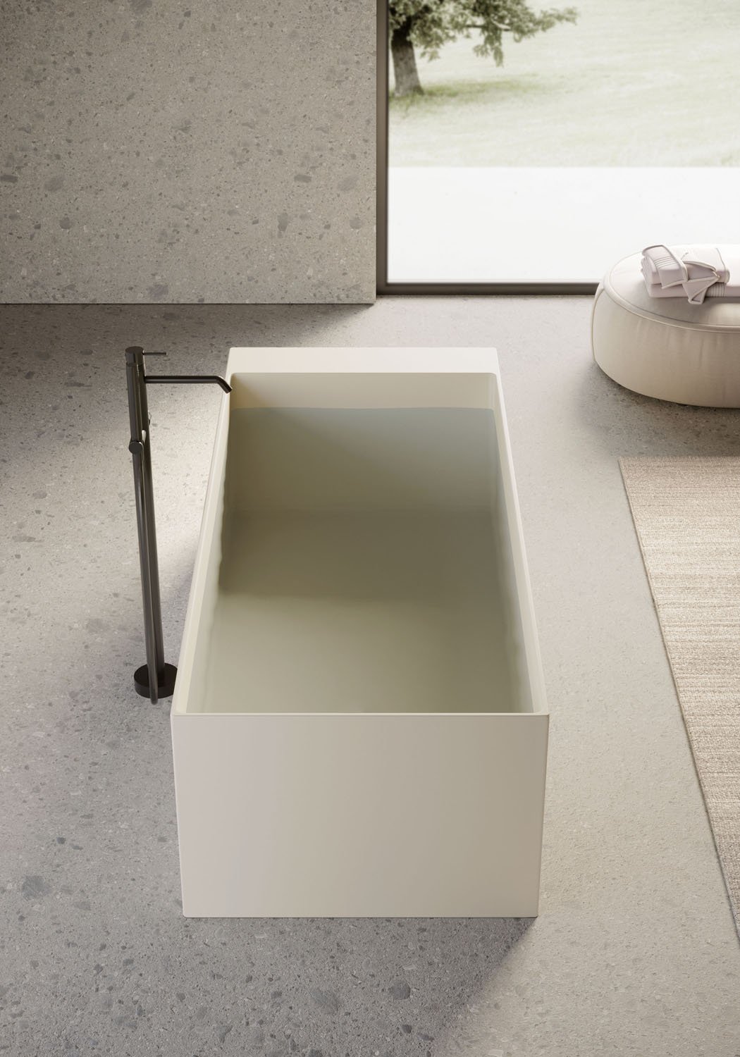 Доступный в матово-белом цвете M-Solid, он может быть окрашен снаружи и внутри в матовые лакированные цвета образцов Ideagroup, RAL и NCS. Отделка крышки в цветном цвете. Доступен в M-Lux с глянцевой белой отделкой и глянцевой белой крышкой.
