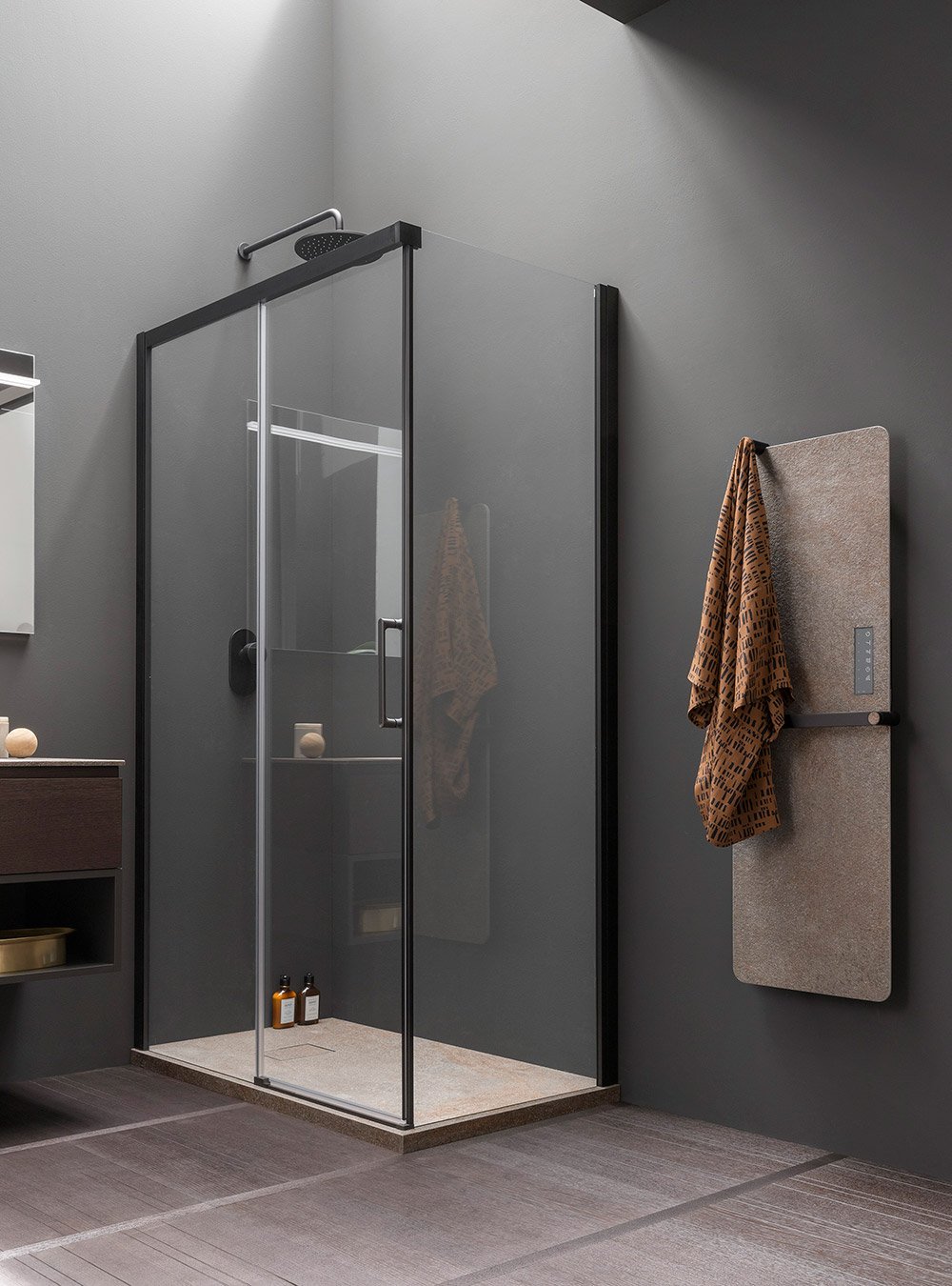 Отличительными элементами модели, доступной как в распашном, так и в раздвижном варианте, являются 8-миллиметровое стекло и встроенная ручка на алюминиевом профиле. Возможность изготовления профилей как в металлическом исполнении, так и в 51 цвете из линейки Arbi позволяет использовать душевую кабину Vento в сочетании с другими элементами любой ванной комнаты.