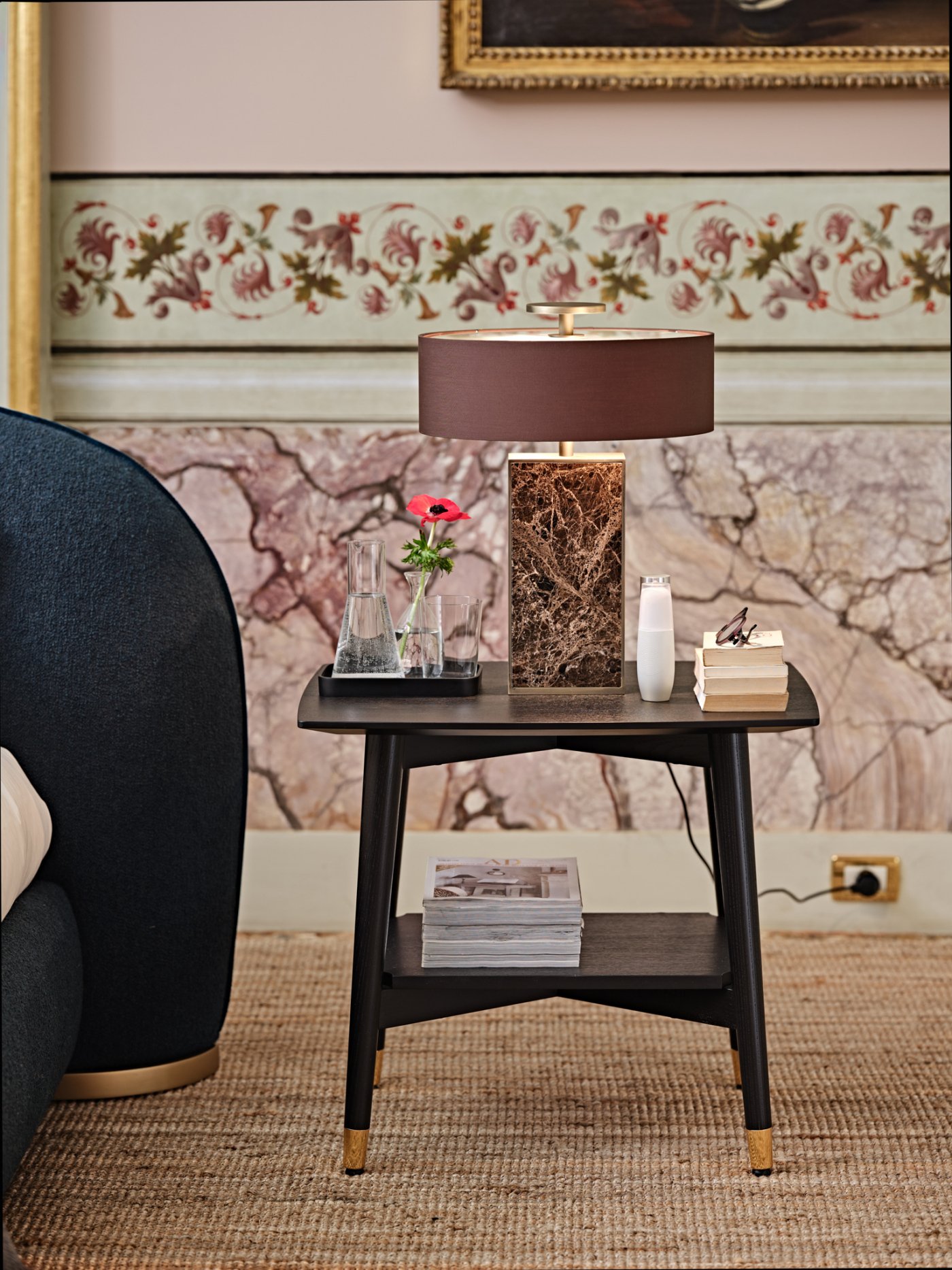 Простая культовая форма, плавно перетекающая в спальню; драгоценная деталь в виде полированной золотой или матовой темно-бронзовой отделки наконечников, которая оставляет стильный след, тихий, но достойный уважения.