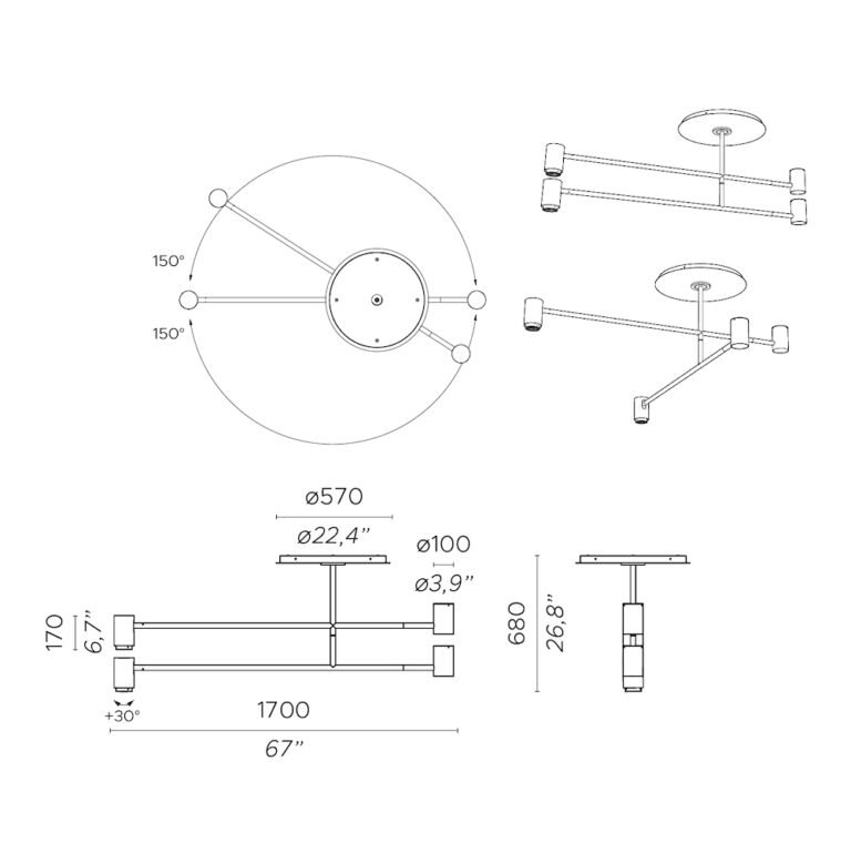 Простые линии, чистота и баланс для фирменного стиля в интерьере, а также индивидуальное освещение. Доступен в двух вариантах отделки и двух версиях, одинарной и двойной, которые можно регулировать. Точечные светильники (один из которых вращается на 350°) обеспечивают прямой и рассеянный свет.