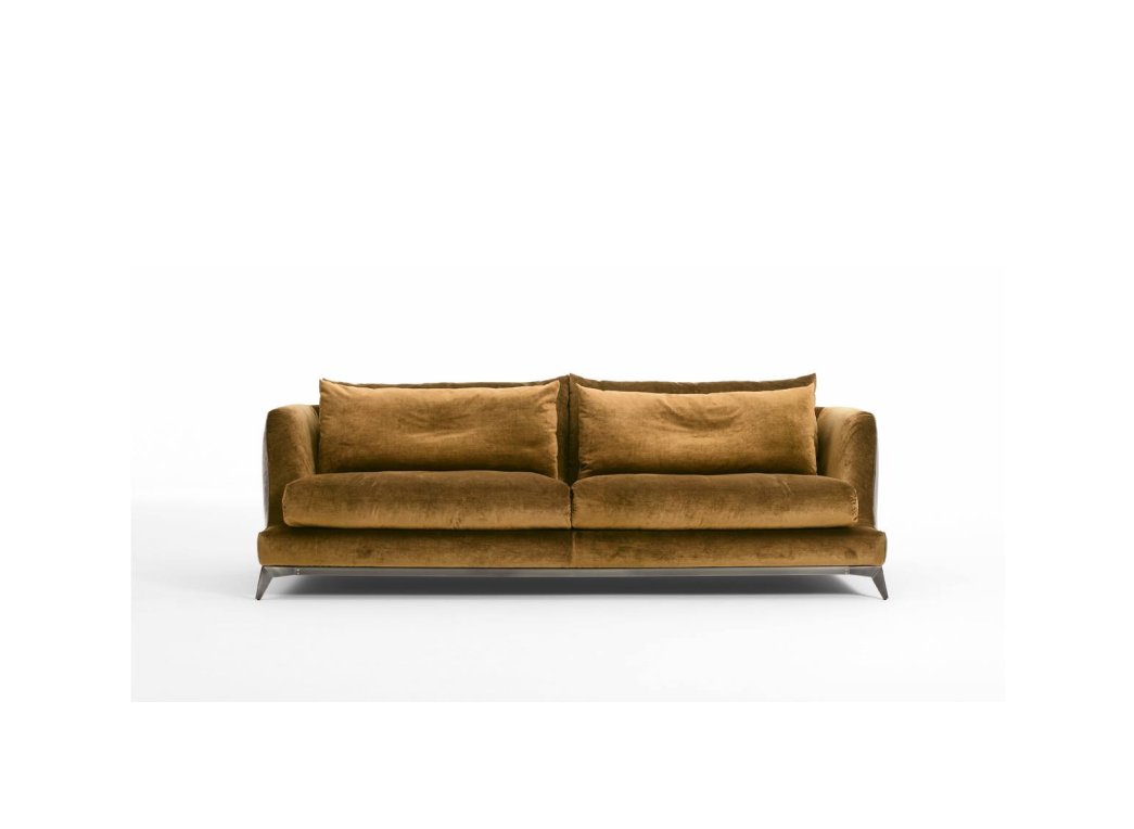 Уютное сиденье из 100% гусиного пуха — это напоминание о мягкости и абсолютном комфорте. Металлическое основание, сдержанное и угловатое, смягчается округлыми формами подушек сиденья и спинки. Элегантный диван в стиле casual, которому суждено стать неподвластным времени предметом мебели благодаря игре пропорций, идеально сбалансированных друг с другом.