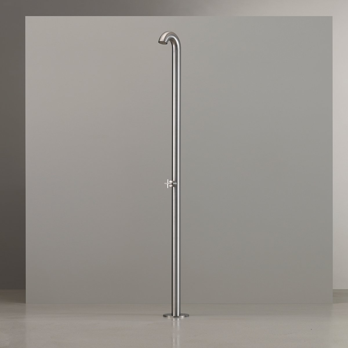Благодаря регулируемому напору воды можно направить струю ближе к себе, если вы хотите помыть только ноги, или сделать струю более широкой для принятия душа. Расход воды составляет 12 л/мин при давлении 3 бар. Для установки изделия требуется монтаж встроенной части на земле.