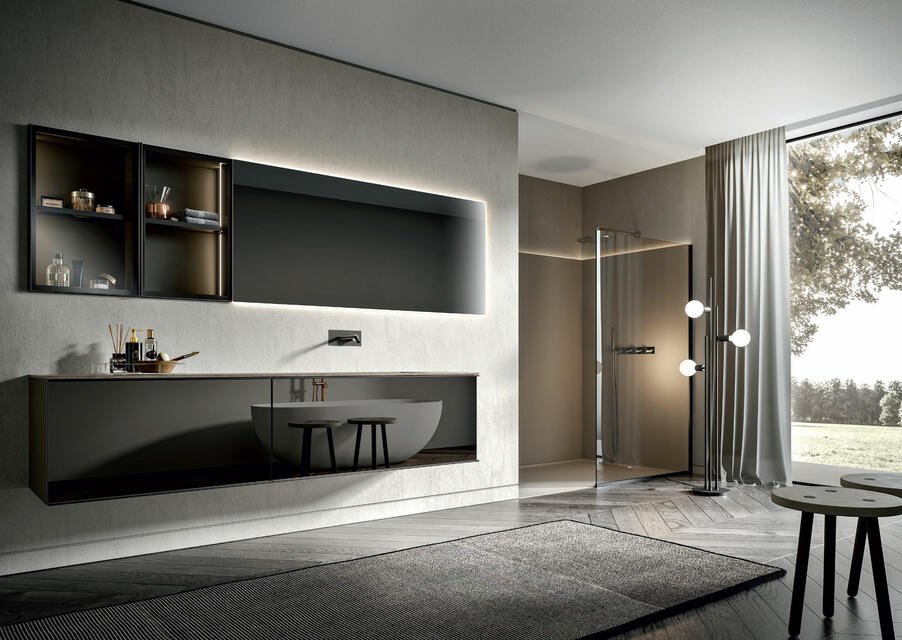 Ультра-минимальный периметр, потрясающий эстетический вид, становится идеальным местом для размещения панелей отделки и материалов на выбор из широкого предложения по каталогу. Рама доступна в 5 элегантных отделках: Gold, Rosato, Champagne, Asphalt и DIamond, чтобы сочетаться с передними панелями в тональном или контрастном решении.