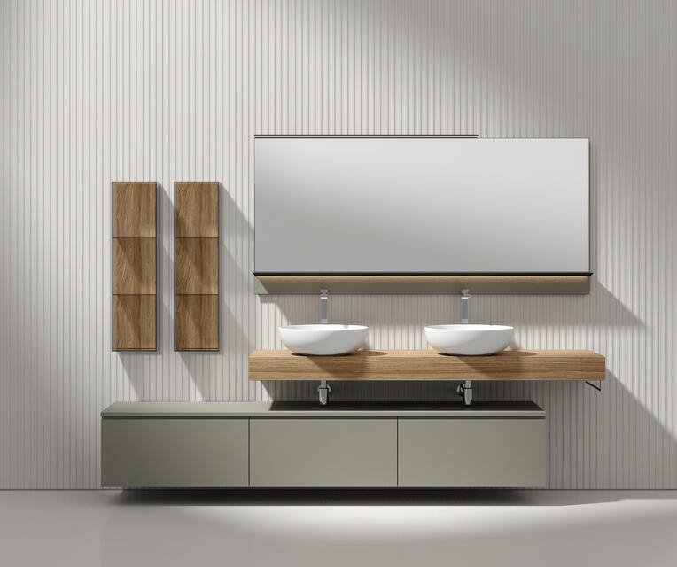Объемы мебели на земле обеспечивают функциональность и сдержанность, всегда соблюдая текущие тенденции мебели. Широкий выбор материалов и отделки позволяет создавать бесконечные комбинации и комбинации, чтобы создать динамичную и индивидуальную ванную комнату.