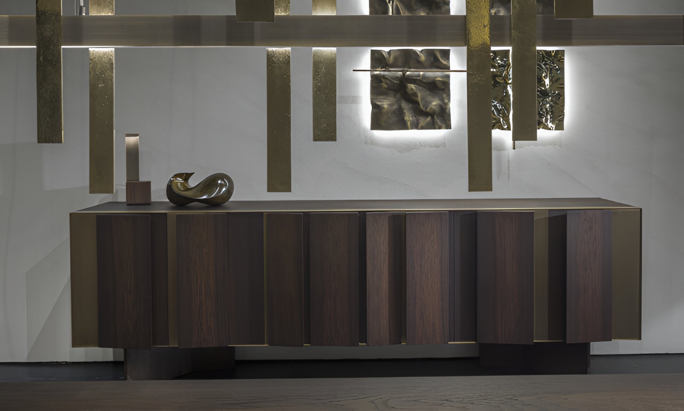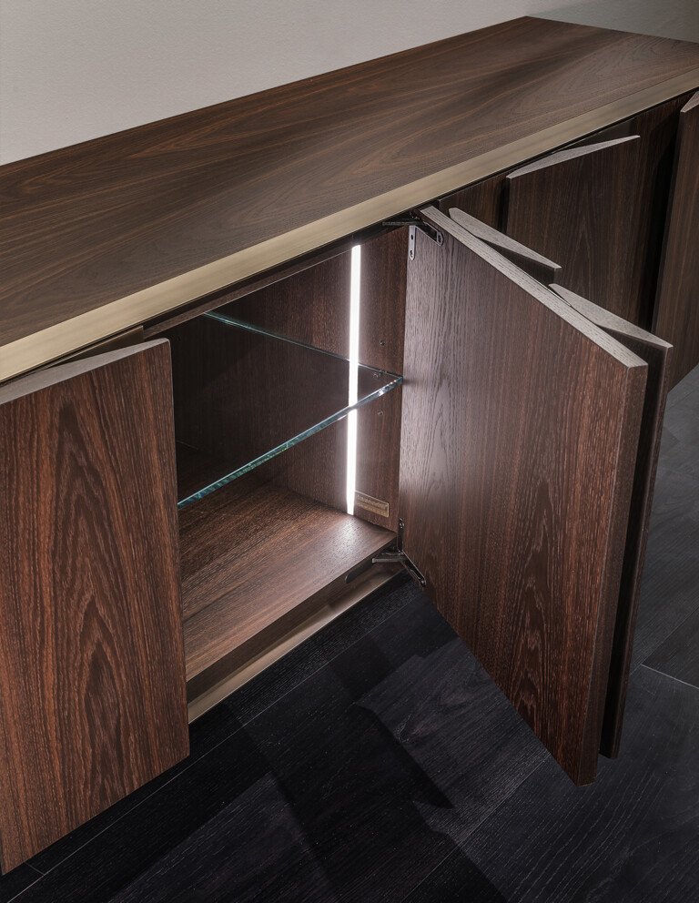Чтобы дополнить коллекцию мебели Fractal, был создан сервант Fractal, дизайн которого основан на сочетании объёмных элементов с треугольным или трапециевидным сечением и плоских деталей, которые чередуются, создавая движение, стремящееся к бесконечности.