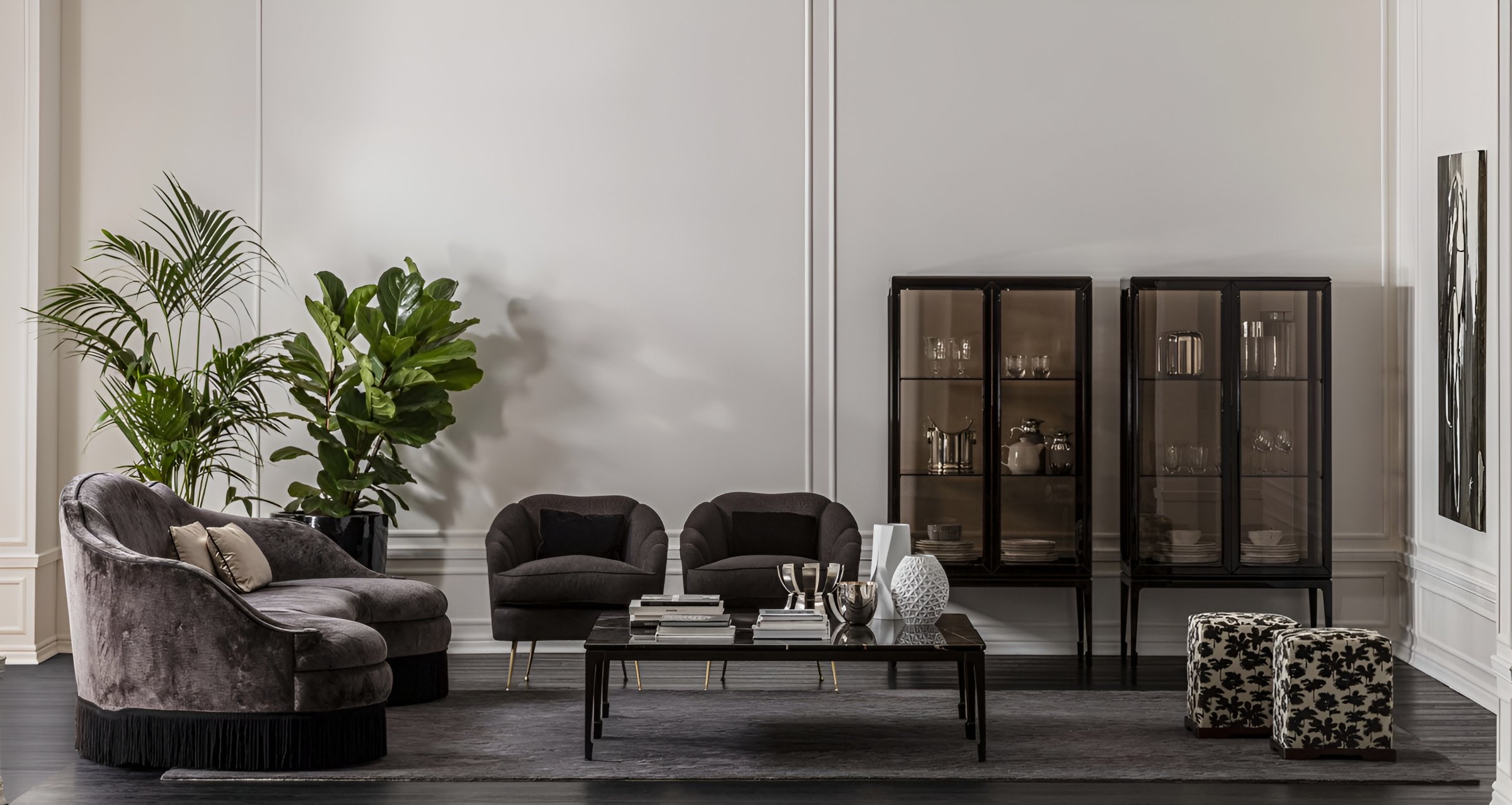Уникальная и изогнутая форма его конструкции, покрытой изысканной тканью, имеет закруглённые и мягкие углы и дополнена очаровательным декором в виде бахромы, которая создаёт удивительное ощущение движения под сиденьем.