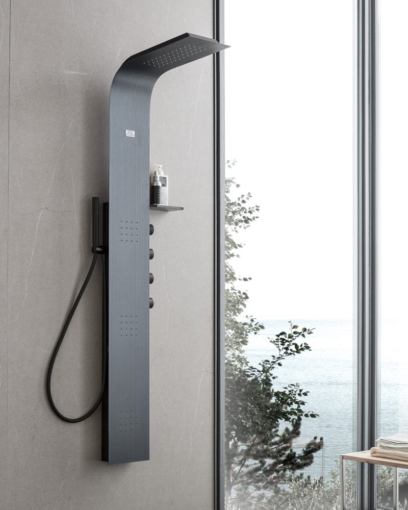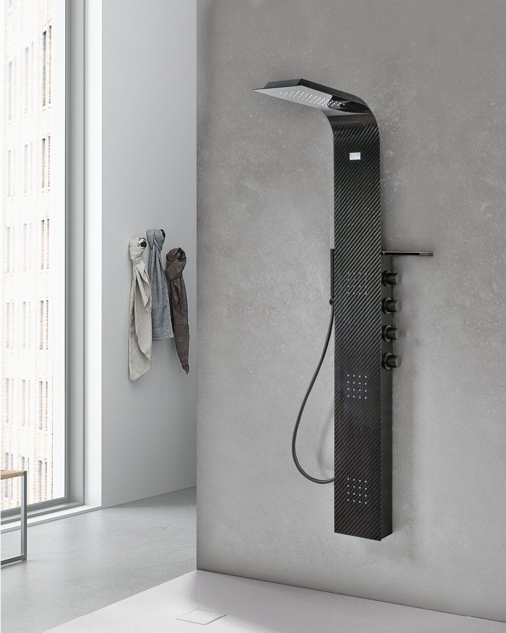 Уникальный дизайн усиливается изысканной отделкой для душевых колонн с неповторимым стилем. Коллекция Lama включает в себя душевые колонны из углерода, металла, Alulife®, Corian® и стали.