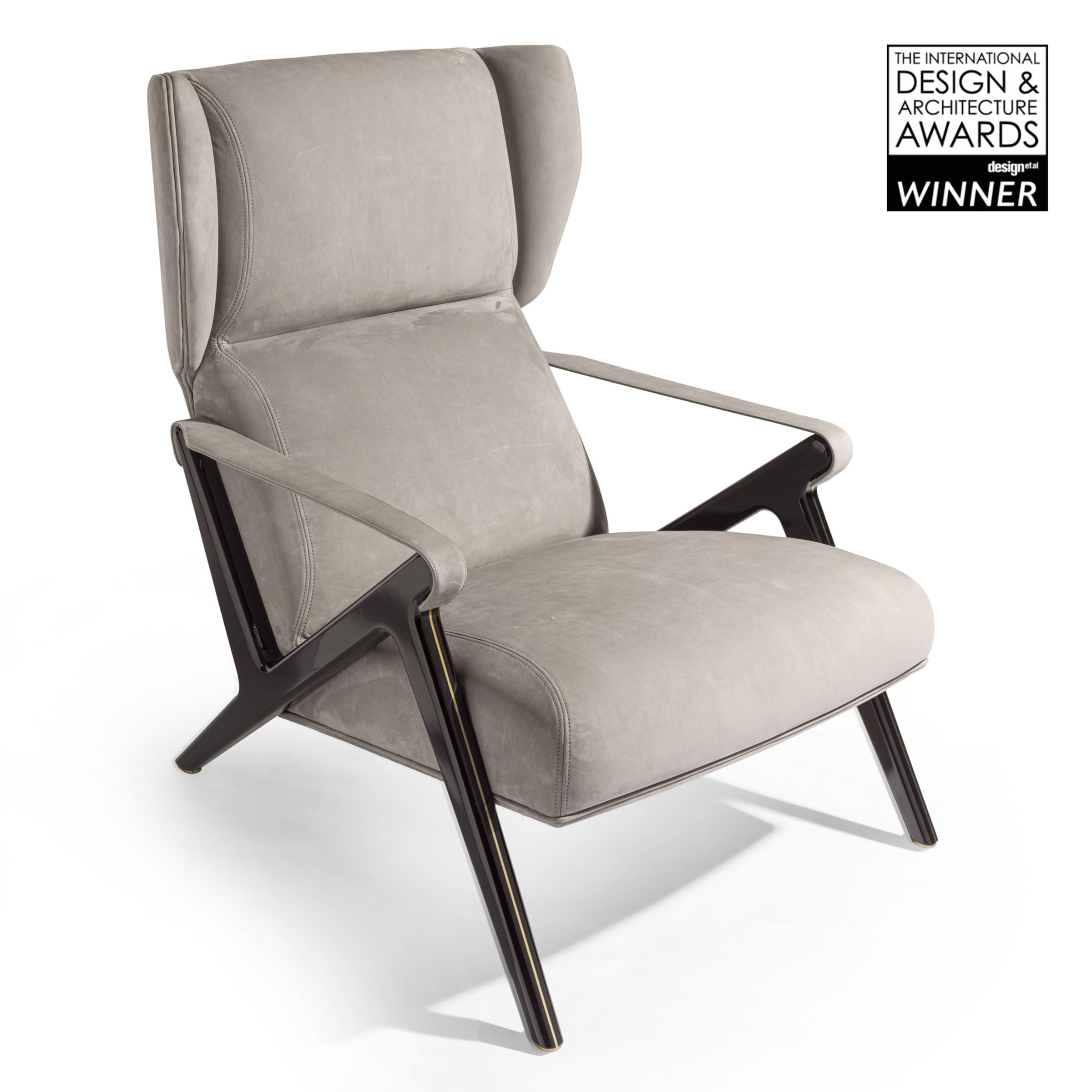 Каркас сиденья из фанеры тополя, набивка из пенополиуретана дифференцированной плотности. Подвес сиденья из эластичных ремней. Подлокотники выполнены из металла, обтянуты кожей. Ножки из черного лакированного дерева с декоративной окантовкой. Металлическиие части у основания ножек доступны в различных вариантах отделки.