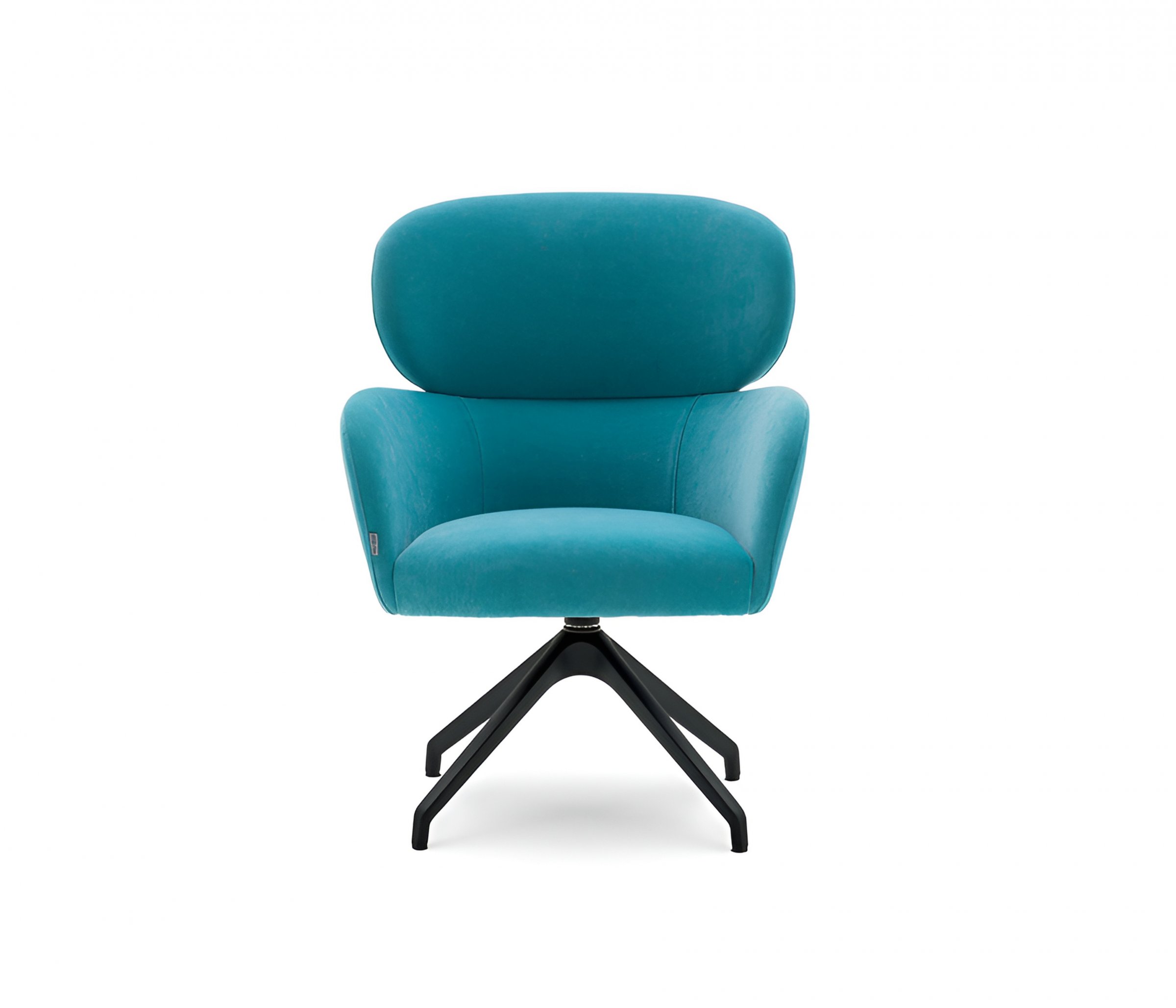 Кресло, каркас сиденья с закругленными краями. Корпус с двумя пенопластовыми элементами. Перепончатое сиденье. Обивка на каркасе. Поворотное алюминиевое основание с 4 спицами.