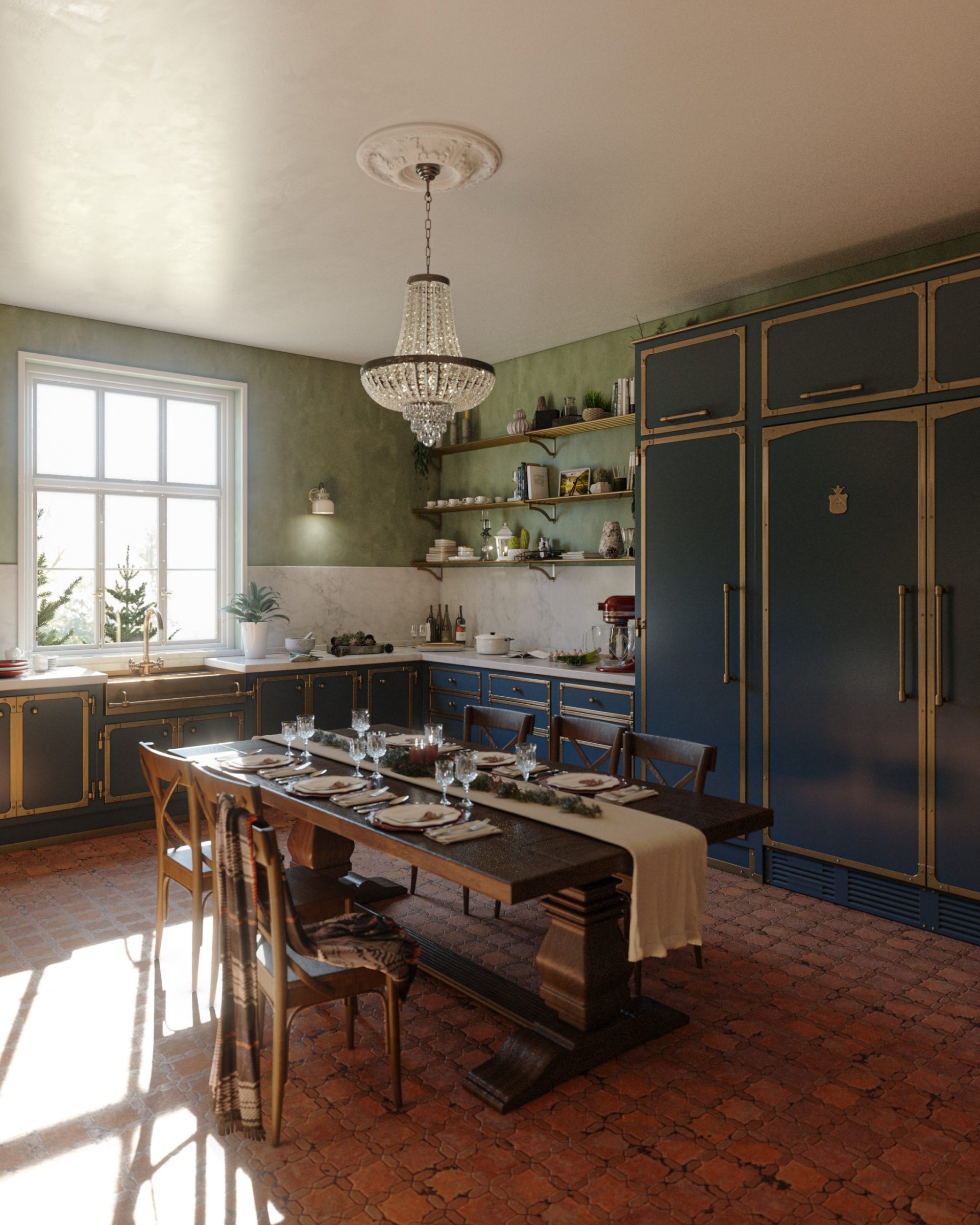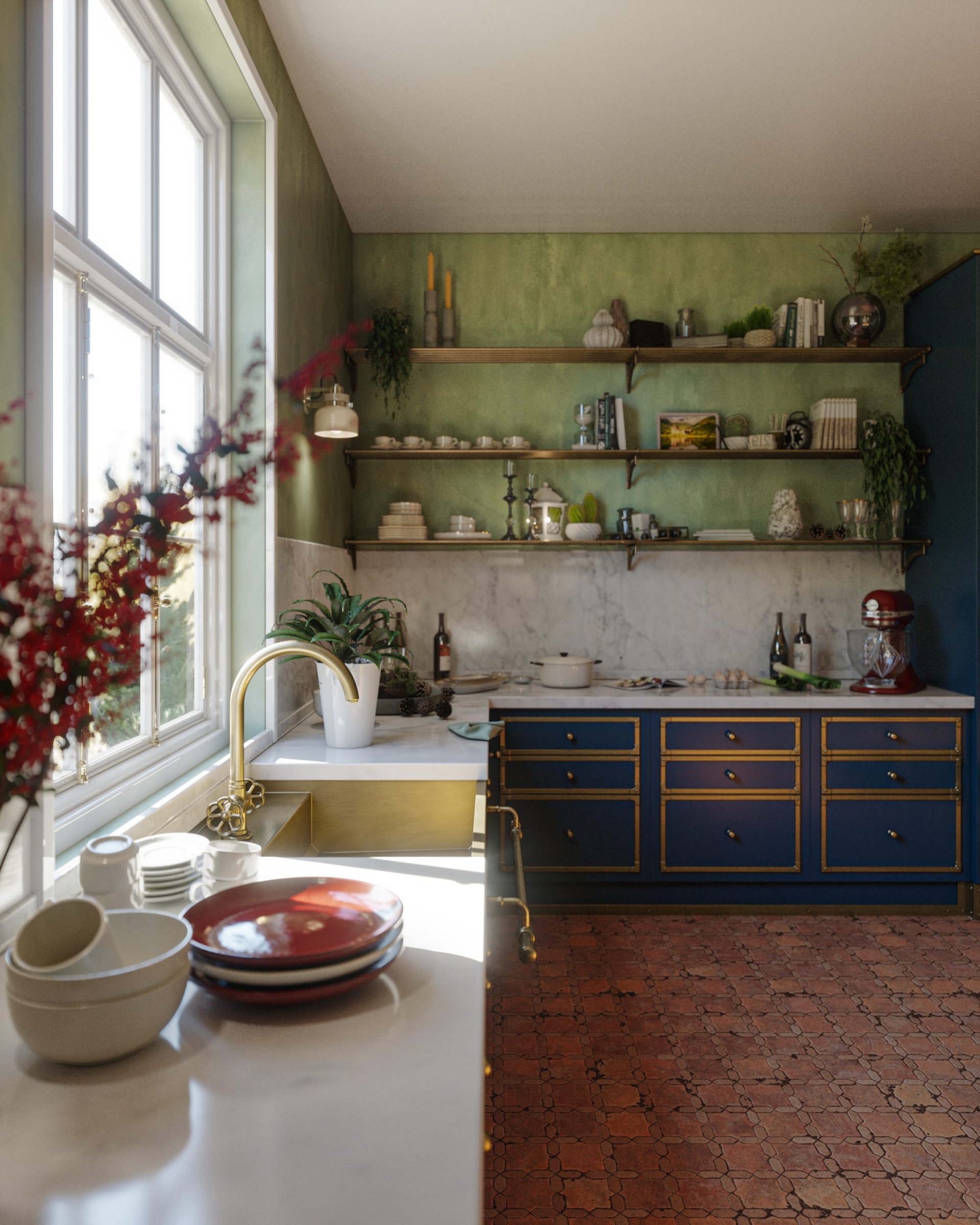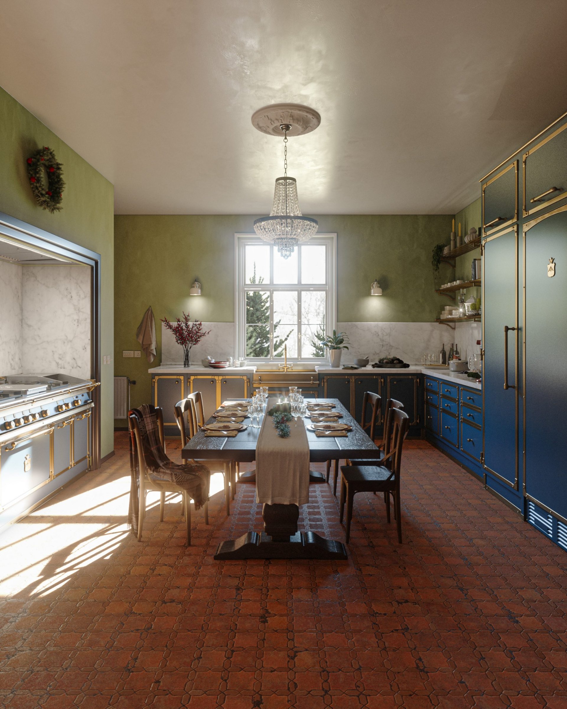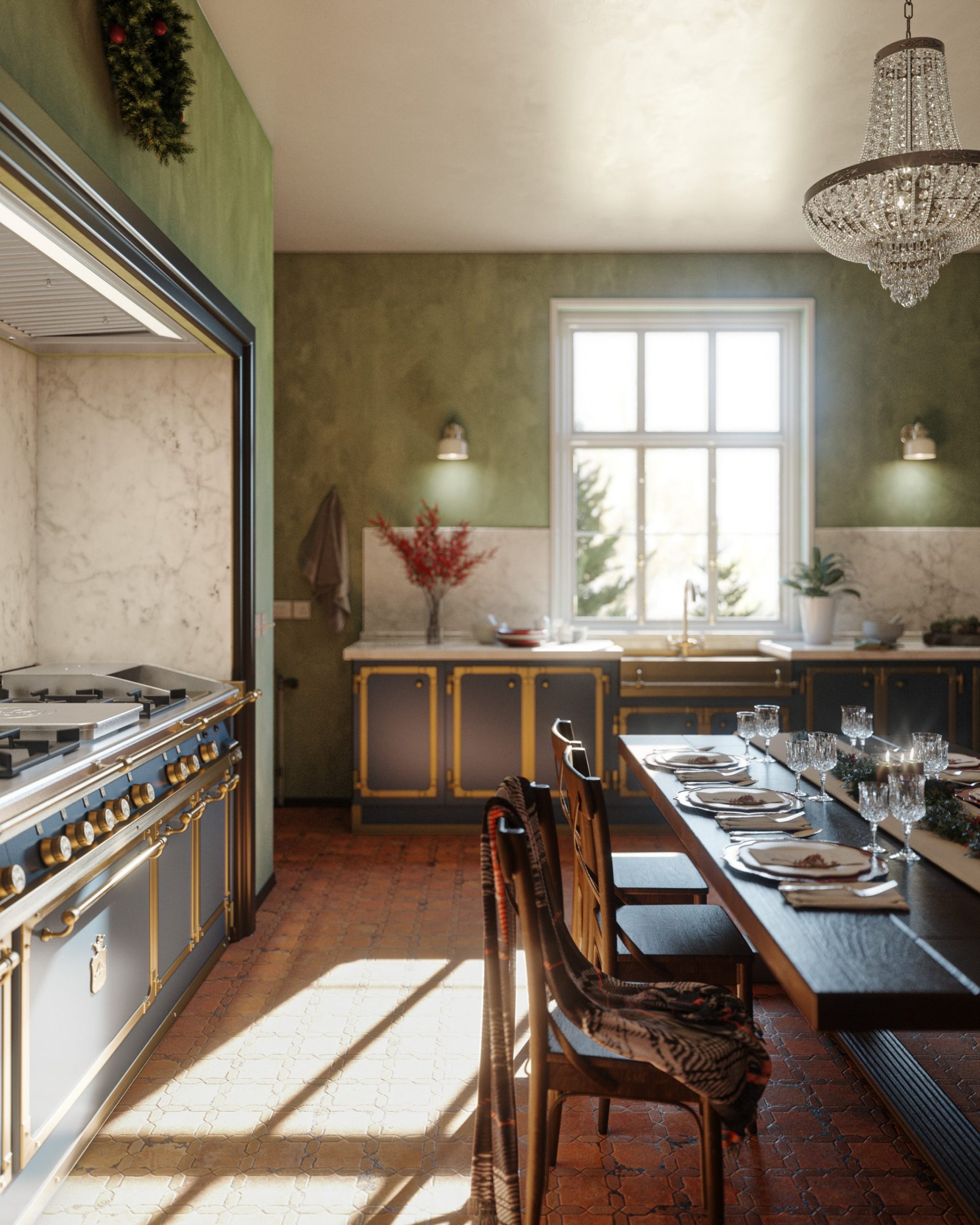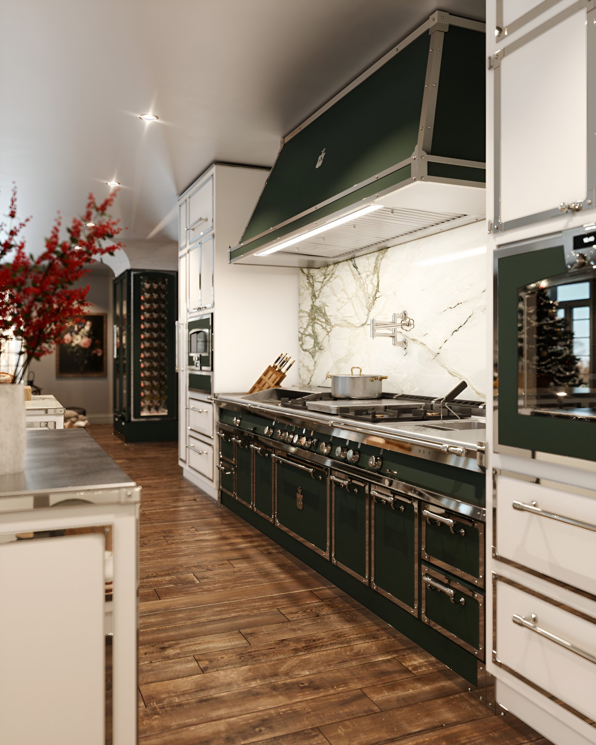 Неожиданное решение машины для приготовления пищи, утопленной в нише и украшенной мраморной задней панелью с выдвижной вытяжкой, является образцовым способом получить пространство в окружающей среде. Зона мытья расположена под большим светлым окном: идеальное место для раковины.