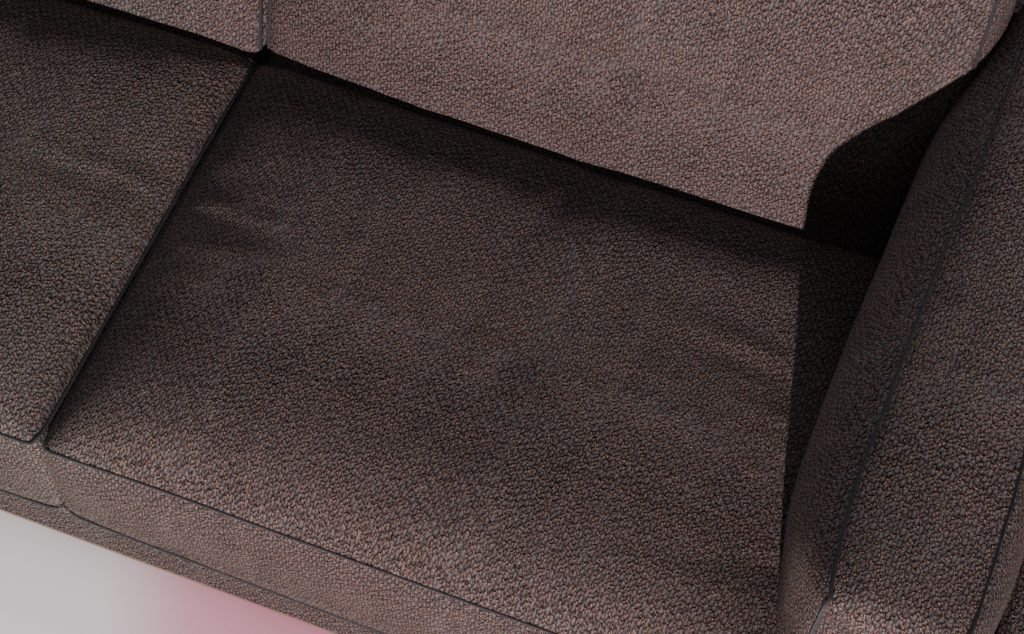 Сбалансированные пропорции и строгая геометрия мягкой конструкции сочетаются с широкими подушками сидений, низкими спинками и полноразмерными подлокотниками, обитыми полиуретаном разной плотности, покрытым микрофиброй, которая обеспечивает комфорт системы сидений с мягкими, простыми и очень уютными формами. Его основание изготовлено из дерева, покрытого бронзовой ламинированной кожей, в отличие от ножек, изготовленных из матового бука, окрашенного в чёрный цвет. Благодаря новым размерам, пропорциям и глубине сидений, позволяющим добиться более классического результата, этот диван в то же время может предложить универсальные мебельные решения, соответствующие меняющимся потребностям современного мира.