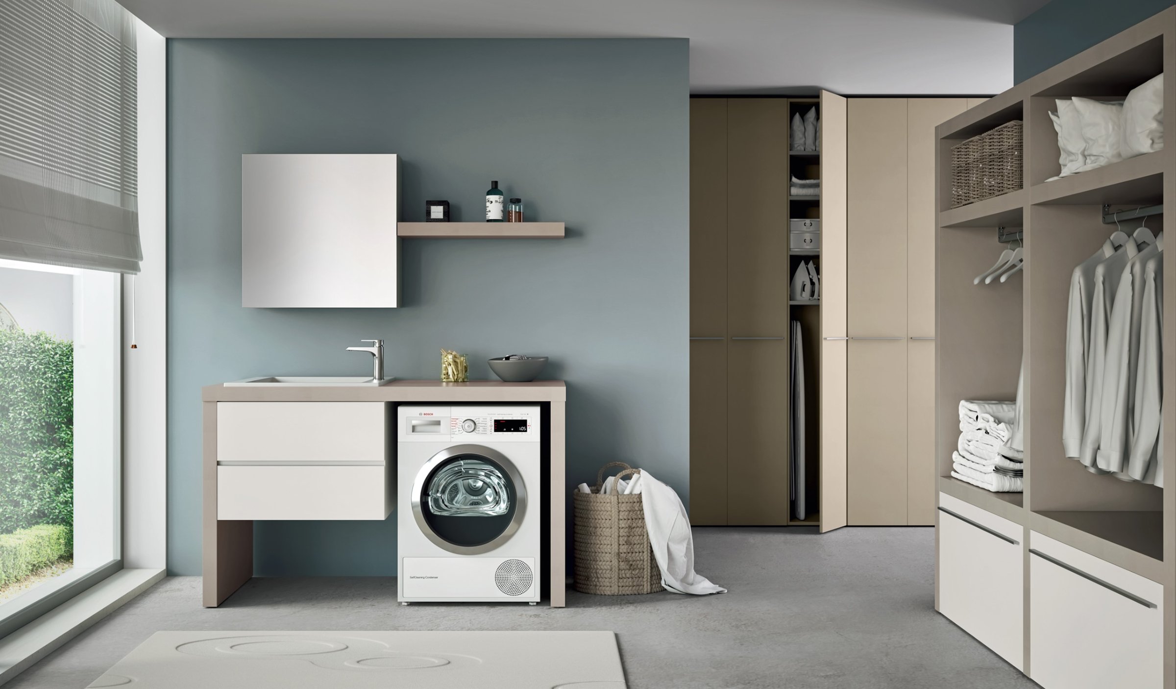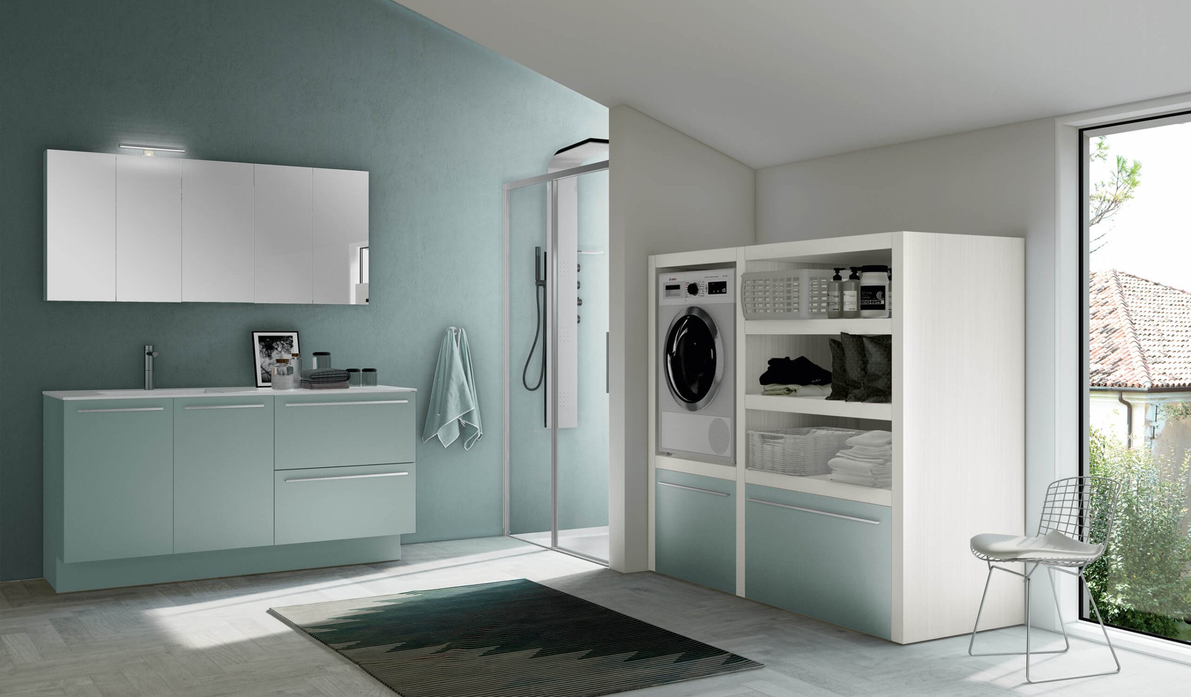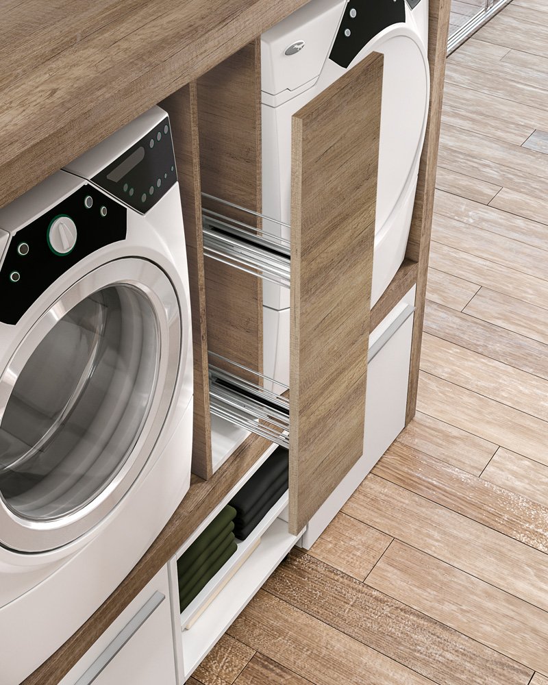 Функциональная геометрия подходит для малых и больших сред. Мебель для прачечной из коллекции Store делает каждый уголок эффективным благодаря возможности создавать свою среду с помощью специальных оборудованных модулей: шкаф для стиральной машины и сушилки, шкаф с раковиной, навесные шкафы, комоды и шкафы.